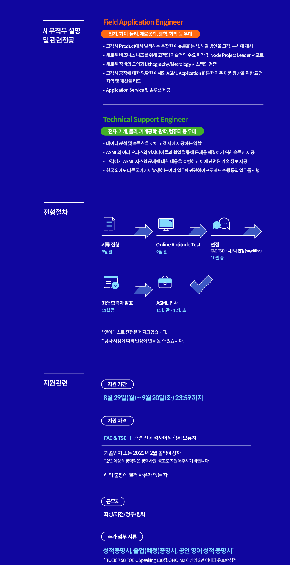[ 공과대학 - 전자공학과 ] [글로벌기업]ASML(반도체 장비 세계 3위) Field Application Engineer 채용공고