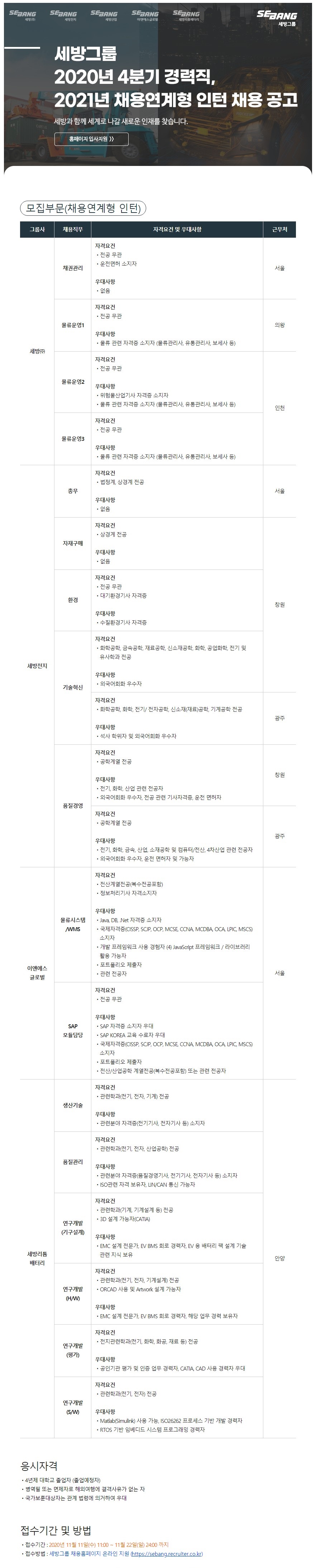 [ 공과대학 - 전자공학과 ] [세방그룹] 2021년 세방그룹 채용연계형 인턴 채용